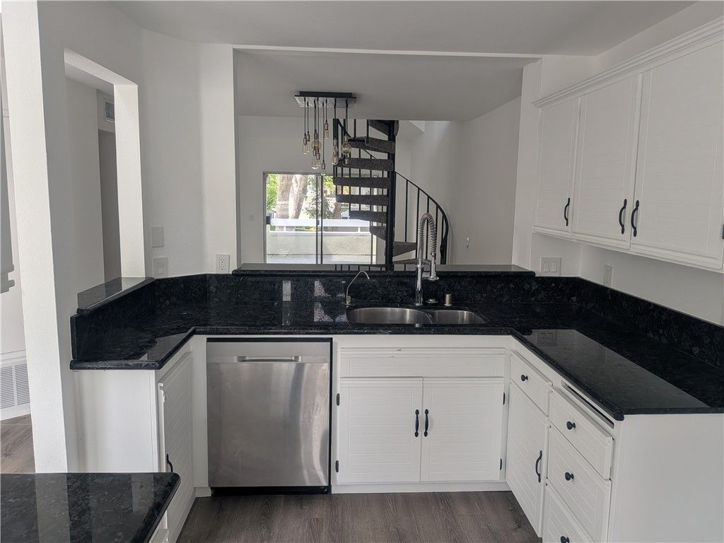 Welcome to this updated townhome located in the gated community of Arbor Park in Valencia. This unit is on the top level of the building. It is a short walk to the pool and spa. Features include wood like laminate flooring and vaulted ceilings. A spiral staircase leads to the upstairs 3rd bedroom that has a closet. The primary suite has an en-suite bathroom and large closet. It also has private access to the balcony. There is also a deck in the front. The second bedroom is adjacent to a full bathroom. The kitchen has been updated and includes laundry hook ups. There is a private garage that accommodates two cars. Location is convenient to shopping, entertainment, and freeway access.